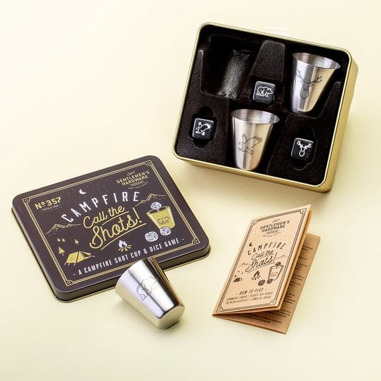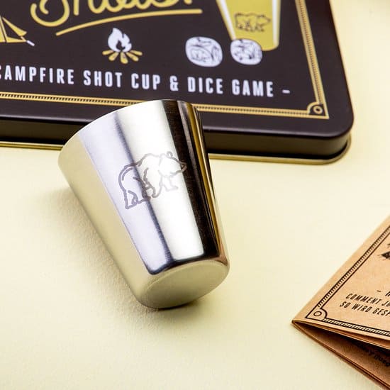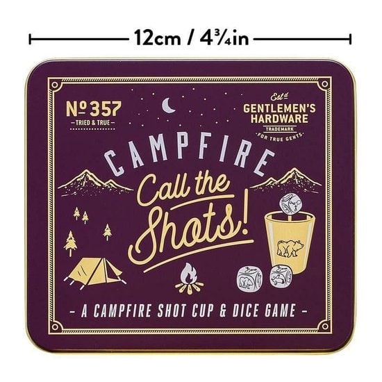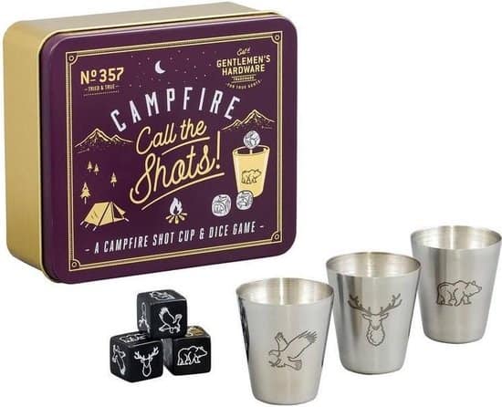 De Campfire Games Call The Shot Drinking Game van Gentlemen’s Hardware is een leuk drankspel om samen te spelen met je vrienden. Kies je Spirit Animal en gooi de dobbelstenen bij elkaar. Het retro spel komt met 3 roestvrijstalen shotbekers van 30 ml en 3 luxe zwarte dobbelstenen met illustraties van dieren. Het drank spel is verpakt in een prachtig vintage vormgegeven blik met het logo van Gentlemen’s Hardware.