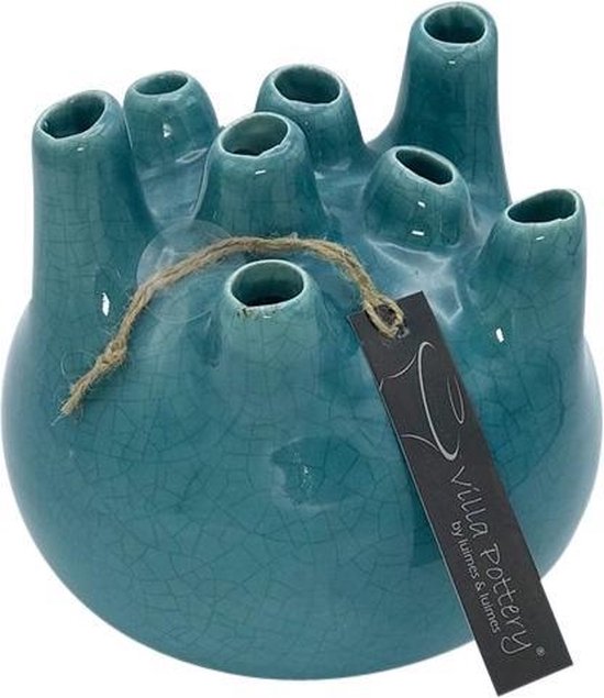 In de lijn Isabelle een leuke modern blauw gekleurde vaas met vele speelse openingen, om zo een kleurrijk geheel te cre?ren. Door de vormgeving en frisse kleur is de blauwe vaas een aanvulling voor elk interieur. De blauwe vaas is met vele kleurrijke bloemen te combineren tot een waar kunstwerk.