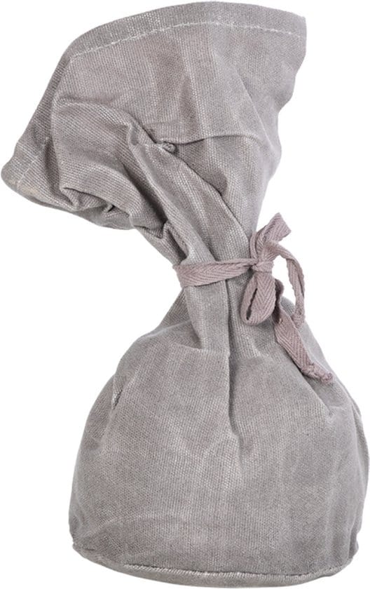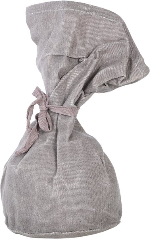 Deurstopper van canvas. Afmeting ca: 14 x 14 x 26 cm. Materiaal: gewaxte canvas/zand. Kleur: grijs. Deze deurstopper is gevuld met zand en heeft een gewicht van ca. 2,5 kg. Door het zachte materiaal ontstaan er geen krassen op deuren en vloeren.