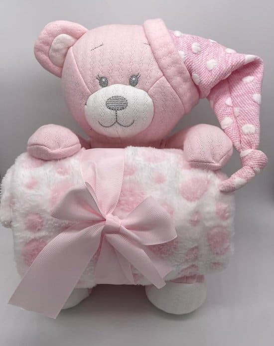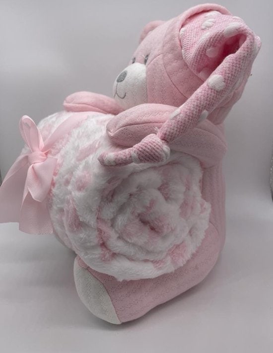 Knuffel beer met plaid deken 100x80cm roze wit | CAG-402 | La Galleria