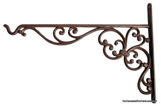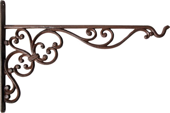 Antiek roestbruine gietijzeren wandhaak. Hang deze sierlijk gekrulde haak in de buurt van uw raam of terras zodat u eenvoudig van uw planten kunt genieten.