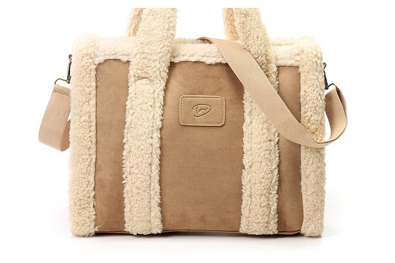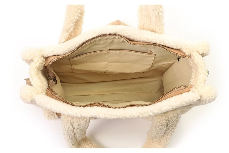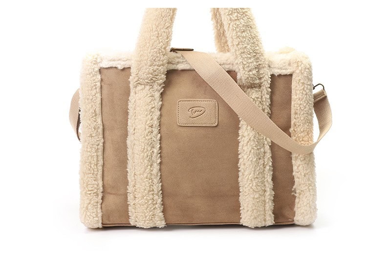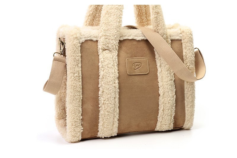 De shopper heeft een prachtige suede look en is omlijst met een luxueuze teddystof in een elegante effen kleur en wordt geleverd met een schouderband.