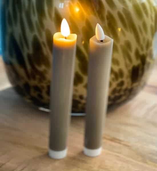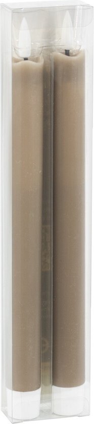 LED dinerkaarsen, set van 2, taupe, robuust, stoer-24 cm